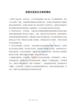 一、哪些情况下房屋买卖合同无效在房屋买卖中,当事人“签订”无效房屋买卖合同的原因很多,大致可分为以下四种情况: (一)一方出于欺骗的故意而签订的房屋买卖合同。即房屋买卖的一方当事人故意告知对方虚假的情...